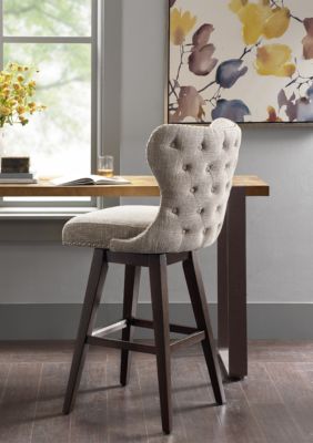 Madison Park Hancock High Wingback Button Tufted Upholstered 32 inch Swivel Bar Stool with Nailhead Accent